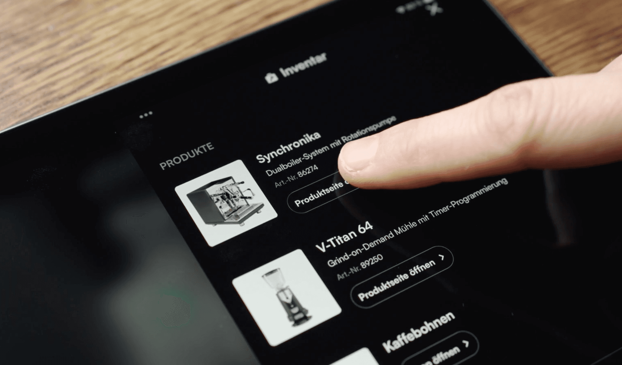 Die Inventarliste zeigt alle verwendeten Artikel mit Produktname, Produktnummer und Bild in einer Sidebar, ähnlich der Kapitelübersicht. Nutzer können jederzeit während des Videos darauf zugreifen und per Klick direkt zur Produktseite oder in den Shop weitergeleitet werden.